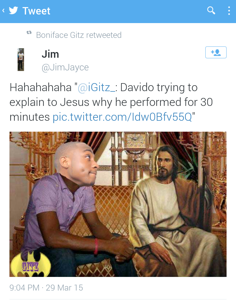 ReplyDeletefunny. Davido trying to explain to Jesus why he performed for 30 minutes full of weeds. Just look at his face when he was trying to explain to Jesus.