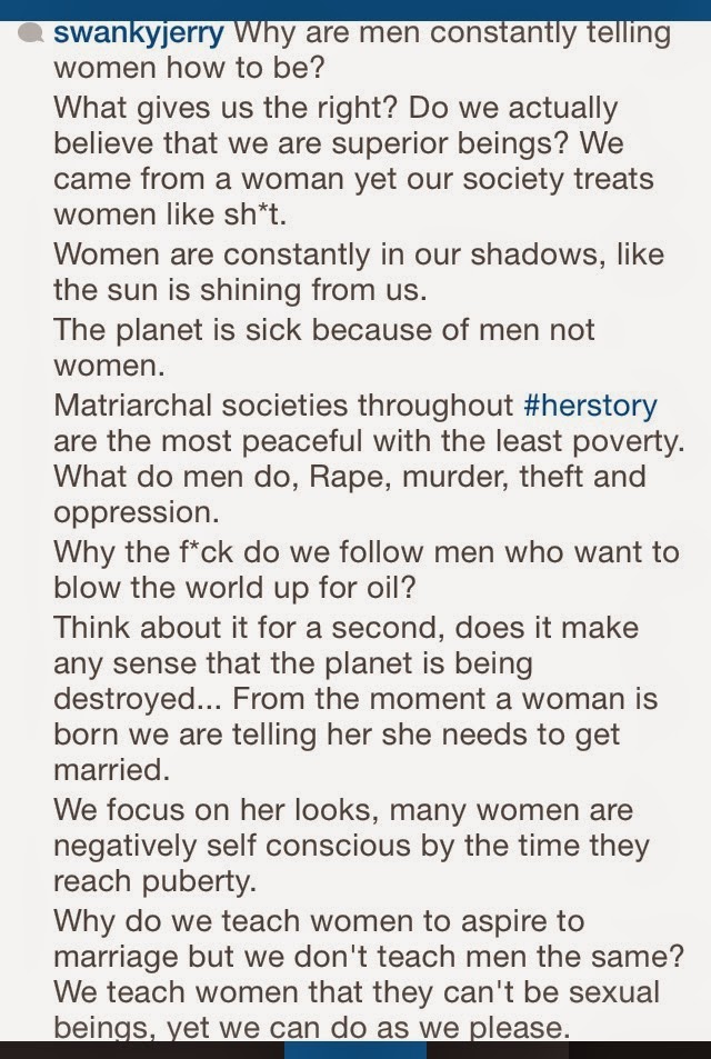 Must everything be about "touching her body" when she is not your wife, wine that waist and shake what your mama gave ya, shorty, in da club and all that crap etc when she's not a whore. I wonder who would love their daughters, sisters or wives to be empowered that way.