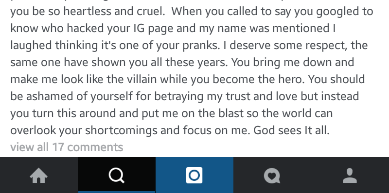 DeleteDude is a nut case tho! Even if she hacked ur account how about confront her in person? Why put it on IG.