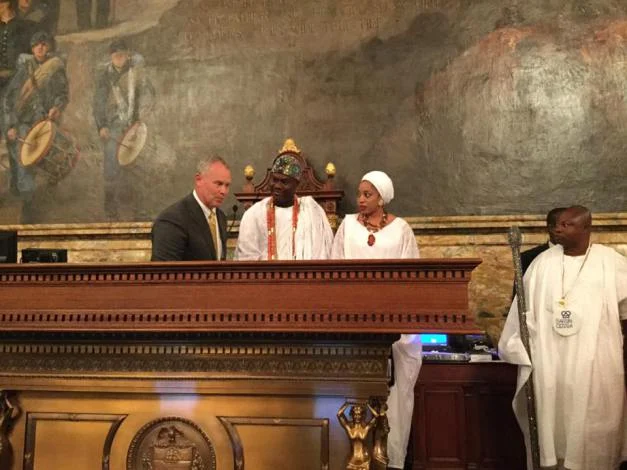 Ooni Ogunwusi, who was also accompanied by a retinue of prominent Yoruba kings and chiefs, was ushered in the Assembly at about 3:30pm by the duo of Democratic Chairman-Commerce Committee W. Curtis Thomas and member representing the Woodhaven District Vanessa Lowest Brown.