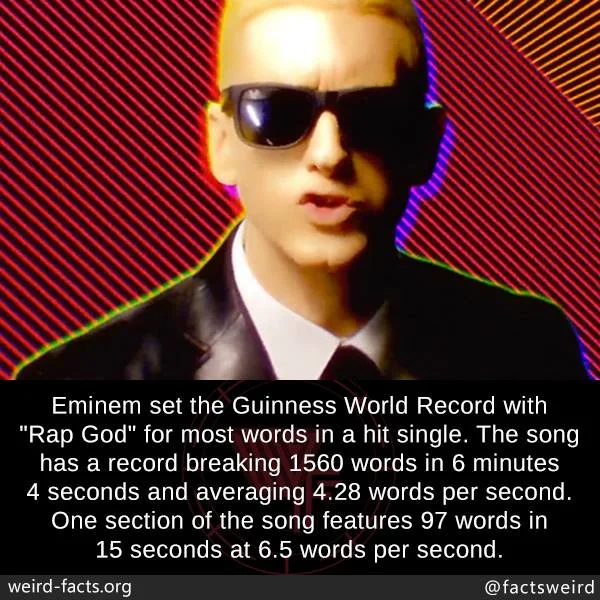 ReplyDelete@Fact two.. I love Eminem any day any time. King of Rap 🙋🙋🙋