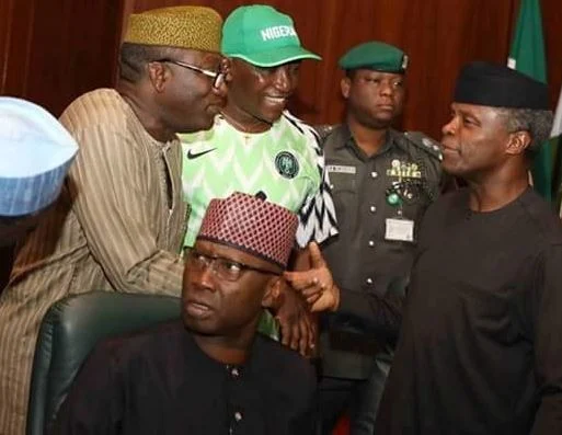 Solomon Dalung, Minister of Youth and Sports, yesterday rocked the new Super Eagles Jersey to the Federal Executive Council Meeting Presided over by President Buhari, at the State House Abuja.